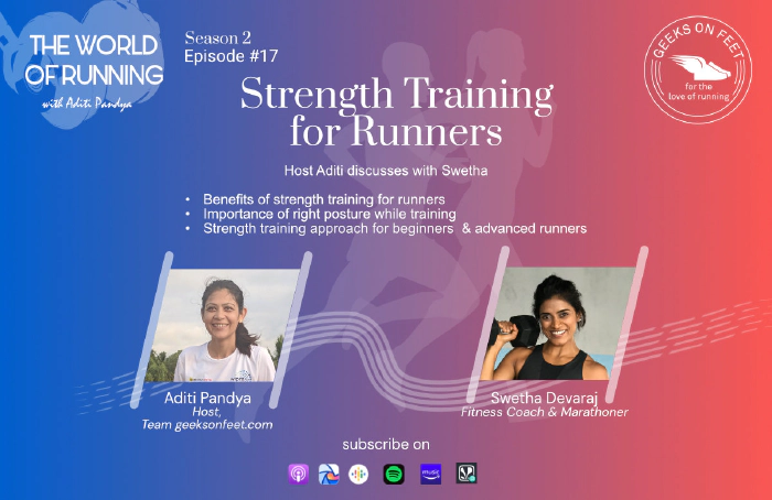 In this episode, host Aditi Pandya discusses the topic of Strength training for runners with fitness coach Swetha Devaraj. Benefits of strength …