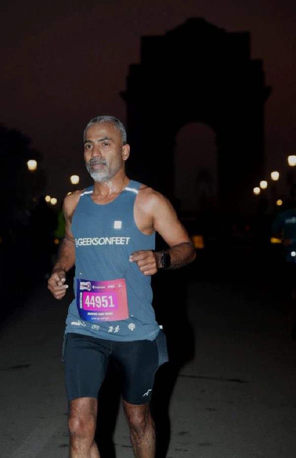 I stayed near the start line and joined my group for a shake-out run on Saturday morning. The weather was pleasant, and thankfully, the AQI levels were much better than expected. Later that morning, I visited the Expo to collect my race kit and soak in the pre-race atmosphere. It was great to catch up with several friends from the running community, including Sanchit, Col. Sandeep Madan (Procam), Nakul Butta (AllInRunning), and Tribhuvan (Fast&Up).