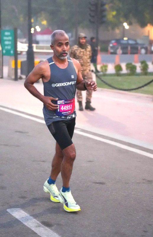 Though the New Delhi Marathon’s two-loop course and innumerable U-turns can be a dampener, it remains a fantastic route. It is flat and cool, but more importantly, seeing familiar faces so often helps ease the pressure and allows you to relax. I truly cherished the many shout-outs and recognizable faces from across the Indian running community.