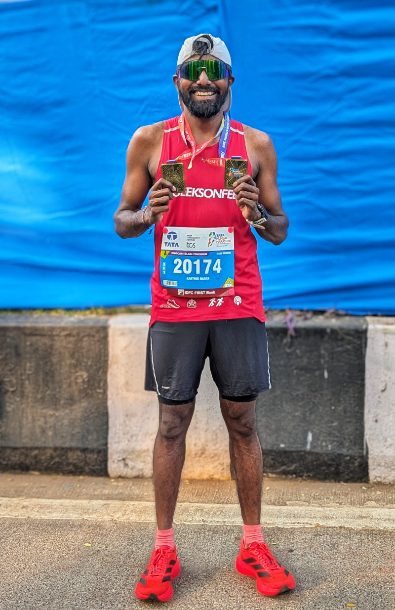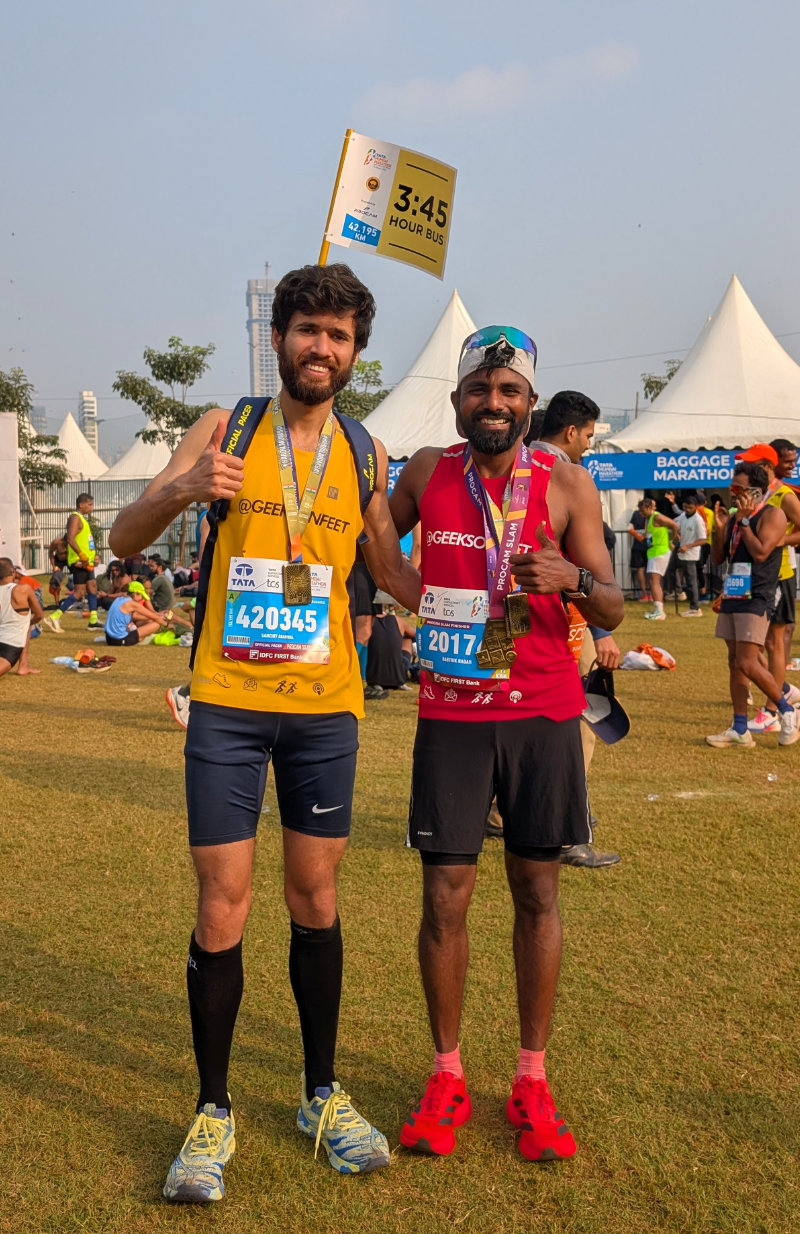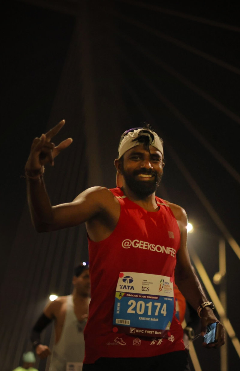 Could I have done better? Yeah! It always looks easier in hindsight, but I knew I had a very strong marathon in the bank. That was motivating enough to accept some BHAGs from my mentor, Aravind Ajad, the real GeeksonFeet, who has helped me for years in this journey. I would like to thank everyone who continues to help me in the journey – family, my close-knit friends and my running group TNRC.
